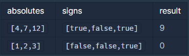 - signs가 [true,false,true] 이므로, 실제 수들의 값은 각각 4, -7, 12입니다.