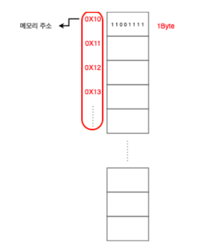 - 메모리 공간은 각각이 구분될 수 있도록 '메모리 주소'를 가짐
