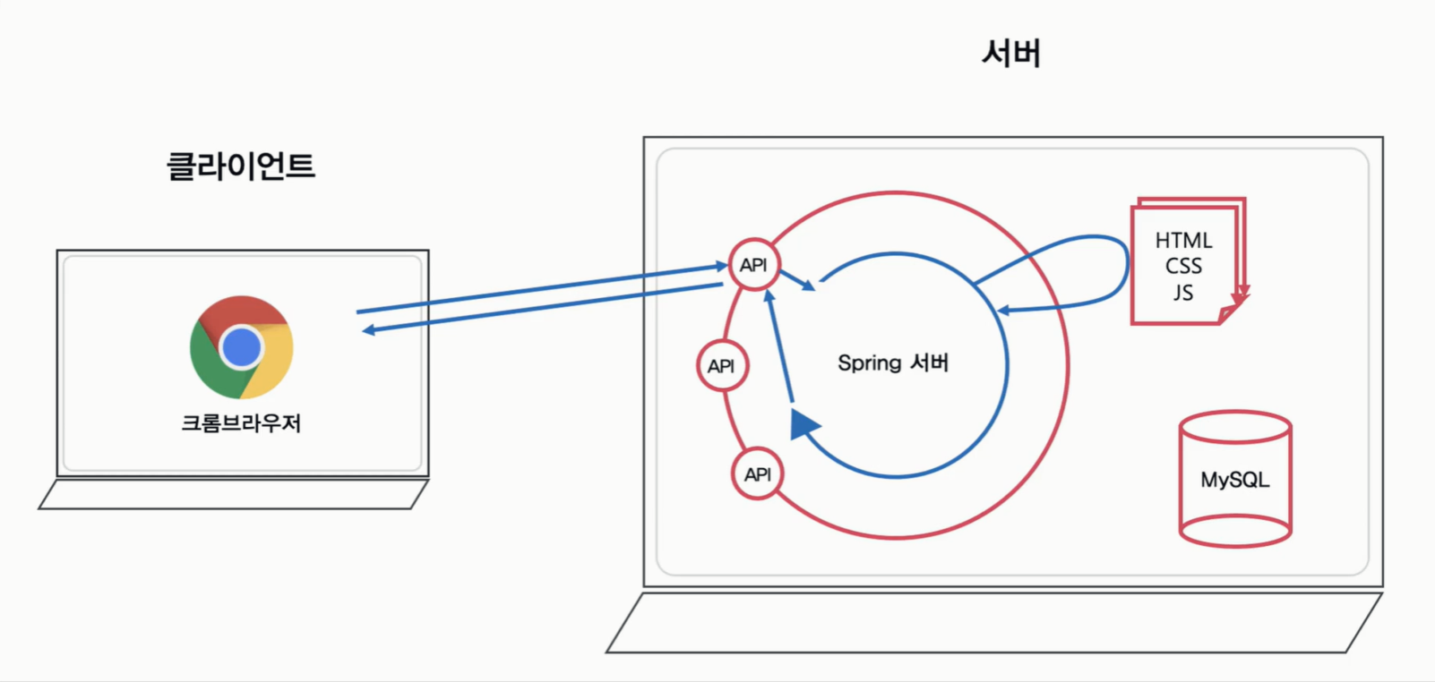 - 클라이언트는 브라우저를 통해 서버에 HTTP 요청
