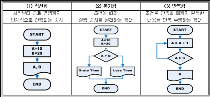 알고리즘이나 프로그램의 논리 or 흐름을 그림으로 표현하는 방법