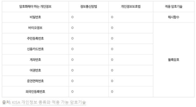 - 정보통신망법, 개인정보보호법 에 의해 비밀번호 암호화는 의무!
