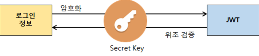 - ) 서버에서 "로그인 정보" → JWT로 암호화 (비밀키 사용)