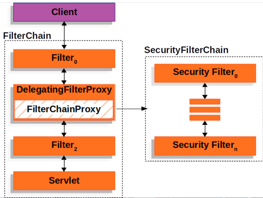 - Spring Security도 인증 및 인가를 처리하기 위해 Filter를 사용.