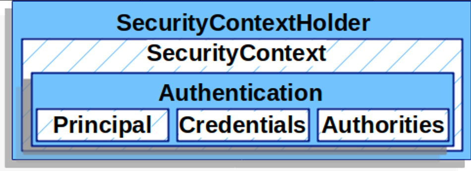 // 예시코드 SecurityContext context = SecurityContextHolder.createEmptyContext(); Authentication authentication = new UsernamePasswordAuthenticationToken(principal, credentials, authorities); context.setAuthentication(authentication); // SecurityContext 에 인증 객체 Authentication 를 저장합니다. SecurityContextHolder.setContext(context);