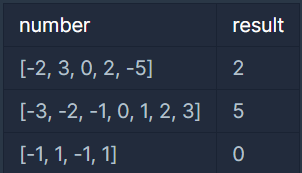 number리스트에서 값을 3개 가지는 조합을 구해 그 3개의 값을 더했을 때 0이 되면 cnt + 1을 해준다.