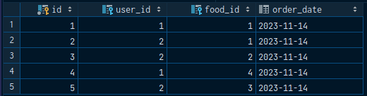 food 테이블 - 그렇다고 해서 user_id나 food_id를 1,2 이런식으로 여러 개 넣는 것은 추가, 조회 시 많은 문제가 발생할 수 있어 현실적으로 불가능 (이런 방식은 RDBMS에서 불가능)