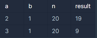 def solution(a, b, n):