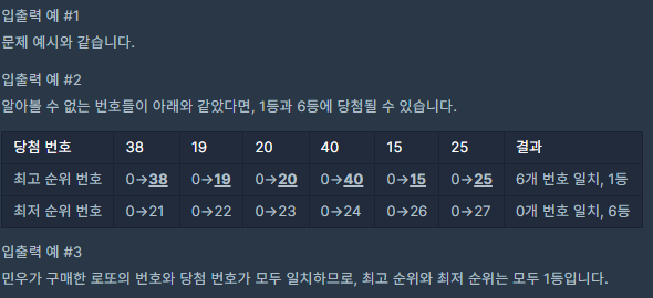 - lottos의 원소들은 정렬되어 있지 않을 수도 있습니다.