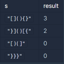 - s를 어떻게 회전하더라도 올바른 괄호 문자열을 만들 수 없으므로, 0을 return 해야 합니다.