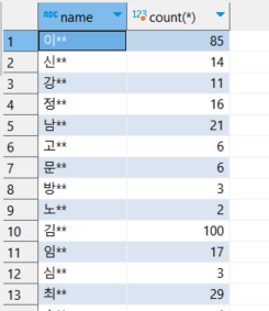 (name을 그룹으로 묶고 그룹으로 묶이는 것의 갯수를 세겠다는 의미)