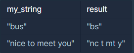- "nice to meet you"에서 모음 i, o, e, u를 모두 제거한 "nc t mt y"를 return합니다.