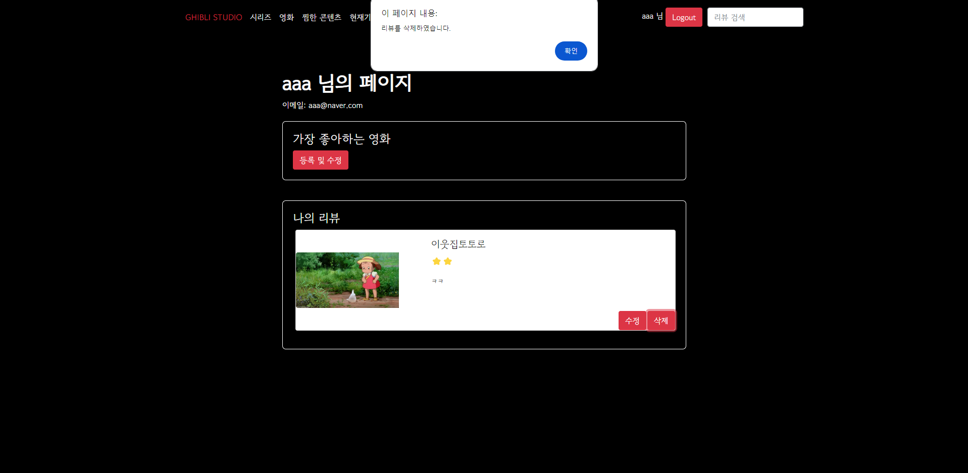 지브리 영화 사이트를 구현에 관련해서 어제 해결되지 않았던 리뷰 삭제 부분은 코드를 다시 처음부터 작성하는 것이 나을 것 같다고 판단이 되어 어제 자기 전, 파이어베이스 사이트의 데이터 삭제 부분(https://firebase.google.com/docs/firestore/query-data/get-data?hl=ko)을 꼼꼼하게 다시 읽어보고 잤다. 이를 토대로 코드를 다시 작성하니 문제가 해결되었다.